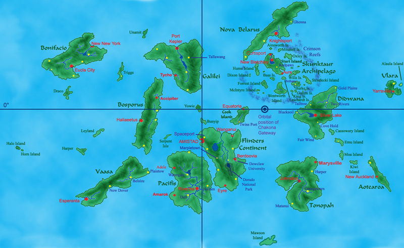You've heard about the planet Chakona, but how much do you truly know about it? In this article, we will present pictures and illustrations of many of the facets of this world colonised by the chakats, and built by them in cooperation with many other anthro species. We will explore the geography, the infrastructure, and the lifestyle of this young and vibrant world.