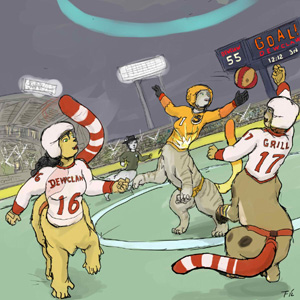 It's not hard to see that the inhabitants of Chakona are huge sports fans. There are many facilities dedicated to various types of sports, but of course the biggest and pretty much a global obsession is chakker. Although played exclusively by chakats, fans of the game include every species, and crowds regularly fill stadiums for all games. There is an intense, although for the most part friendly, rivalry between the supporters of the various teams, and membership in the cheer squads alone is a much coveted thing. For more complete information on the sport of chakker, please read the article by Honeymane. |
